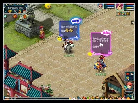 款款相谈诉真心(单人活动):等级≥50级的单人玩家找任务NPC寻缘使者(长安230,120)选择“帮三界有情人寻找缘分”领取。任务完成之后除了获得经验,物品奖励之外,还能获得小冒泡,用来换取单身节专属冒泡框装饰。